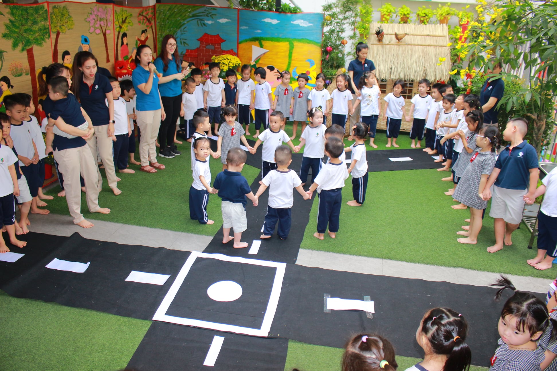 Phương thức đồng giảng và thống nhất chủ điểm – TEAM TEACHING: GVVN và NN cùng giảng dạy trên một chủ điểm bài học đã được thống nhất nhằm khai thác, củng cố và mở rộng kiến thức, nâng cao kỹ năng cho trẻ, đồng thời qua đó, các em có được nhiều góc nhìn và biết mạnh dạn bộc lộ ý kiến và cảm xúc cá nhân. Nhà trường vận dụng triệt để các phương pháp sư phạm tiên tiến phát triển trẻ đa diện, theo phương thức học tập thư giãn, nhẹ nhàng nhưng hiệu quả “LEARN THROUGH PLAY” – phối hợp bài học với bài chơi ở trong lẫn ngoài lớp và khơi dậy trong các em niềm hứng thú, ham học.
