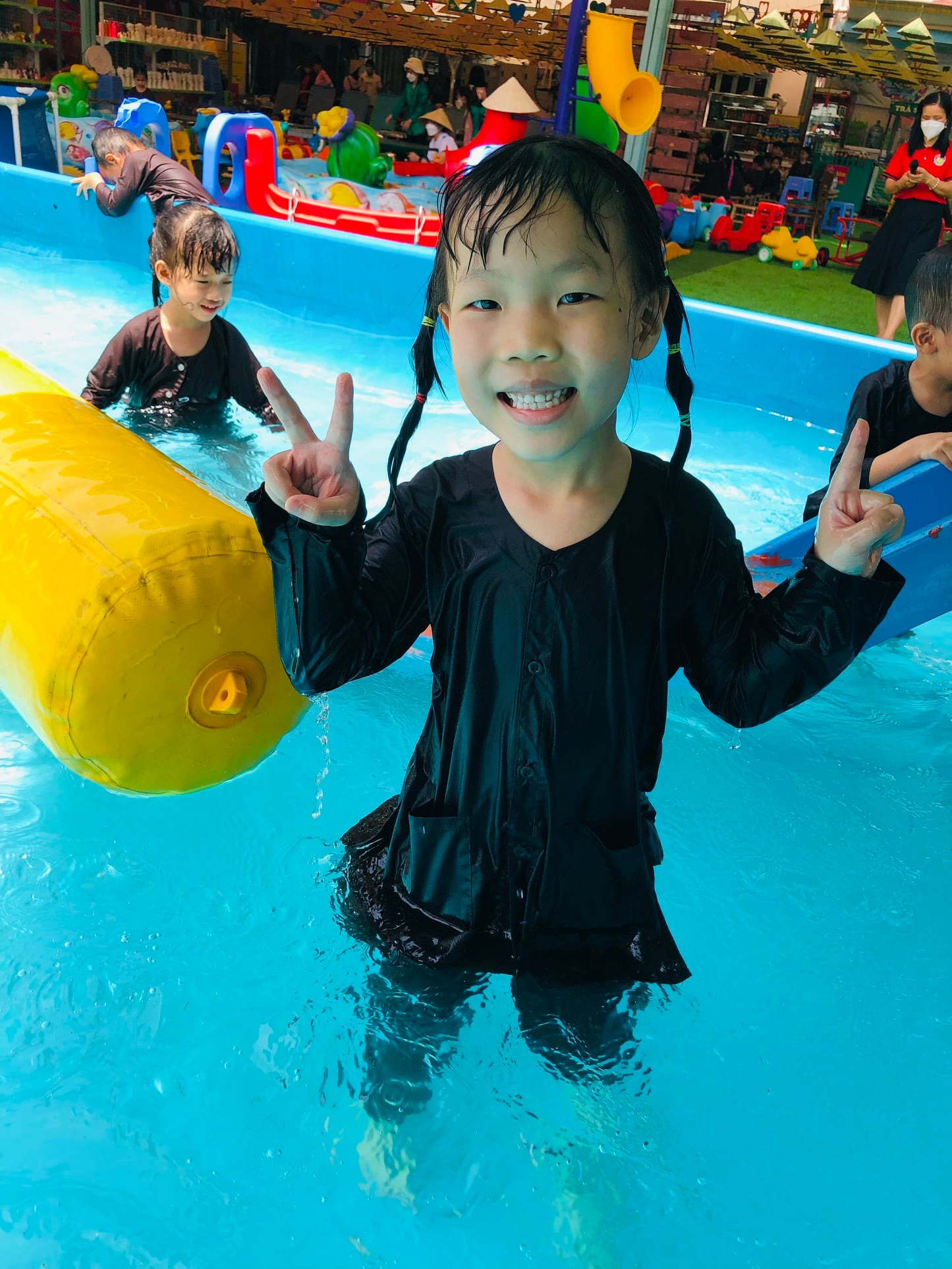 - Có 1 hồ bơi nho nhỏ xinh xinh cho bé và các bạn thỏa thích vùng vẫy.